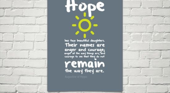 Often hope is confused for naive optimism, like a form of denial. Augustine of Hippo reputedly said, “Hope has two beautiful daughters. Their names are anger and courage; anger at the way things are and courage to see that they do not remain the way they are.” How does this quote alter your understanding of … Continue reading Day 04 (Wednesday)